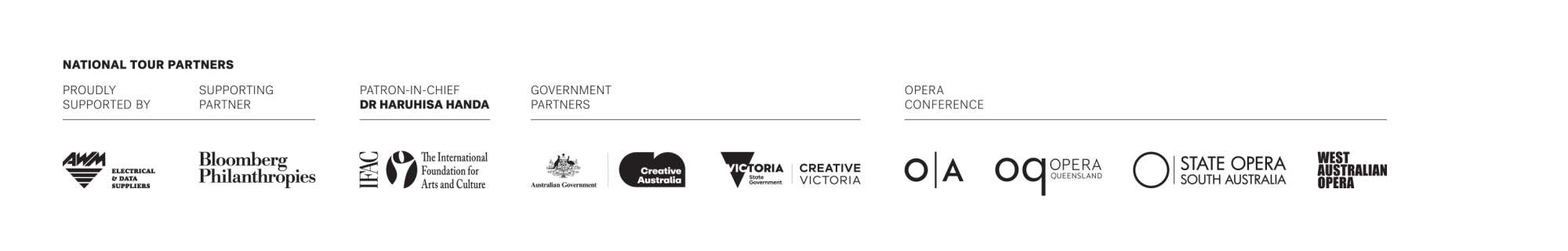 The Opera Conference, Australia’s national partnership of professional opera companies, the Australian Government through Creative Australia, its arts and funding advisory body, by the NSW Government through Create NSW, and by the Victorian Government through Creative Victoria.